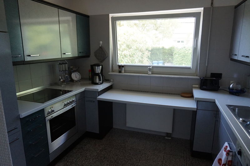 Komplett ausgestattet für bis zu 6 Personen (Kaffeemaschine Filtergröße 4, Wasserkocher, Toaster, Eierkocher, Kühlschrank mit Gefrierfach, Spülmaschine) Fliegengitter vor dem Fenster